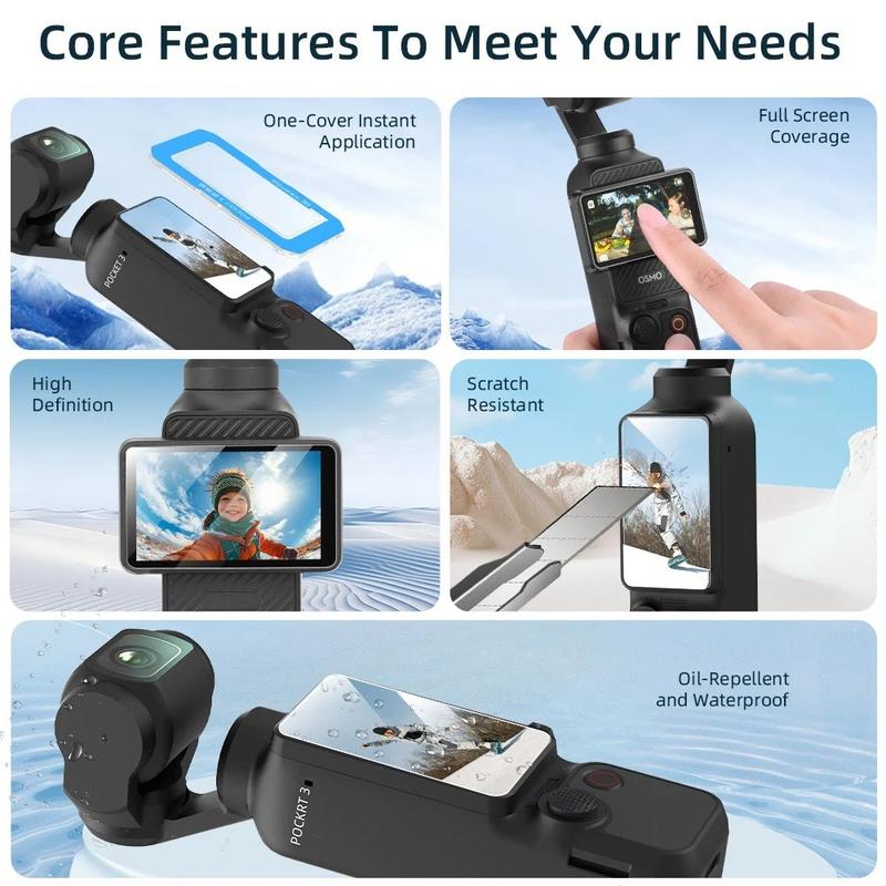 Cet ensemble de 3 protections d'écran en verre trempé pour DJI Osmo Pocket 3 est conçu pour protéger l'écran de votre caméra contre les rayures, les traces de doigts et l'usure quotidienne, sans altérer la clarté de l'affichage ni la réactivité tactile. Fabriquées en verre trempé 9H résistant, ces protections constituent un moyen pratique de préserver l'état de l'écran de votre caméra lors de vos déplacements, de vos tournages et de vos utilisations en extérieur.