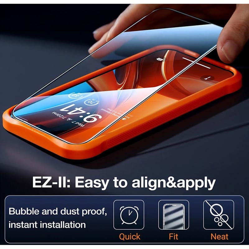 - Protection en verre trempé : Fabriqué en verre trempé durable pour protéger l'écran de votre iPhone 16 Pro Max des rayures, des chocs et de l'usure quotidienne. - Cadre à alignement automatique : Grâce à son cadre à alignement automatique facile à utiliser, l’installation est rapide et sans bulles, pour un ajustement parfait à chaque fois.