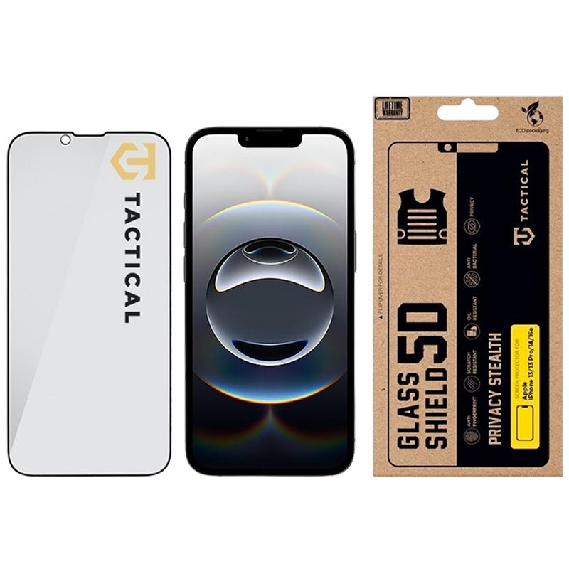 Protecteur d'écran en verre trempé Tactical Glass Shield Privacy Stealth 5D pour iPhone 13/13 Pro/14/16e/17e - 9H, 0,33 mm