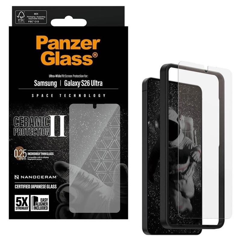 Protecteur d'écran PanzerGlass Ceramic II Protection Ultra-Wide Fit EasyAligner pour Samsung Galaxy S26 Ultra - Verre céramique, résistant aux empreintes digitales, compatible avec les coques