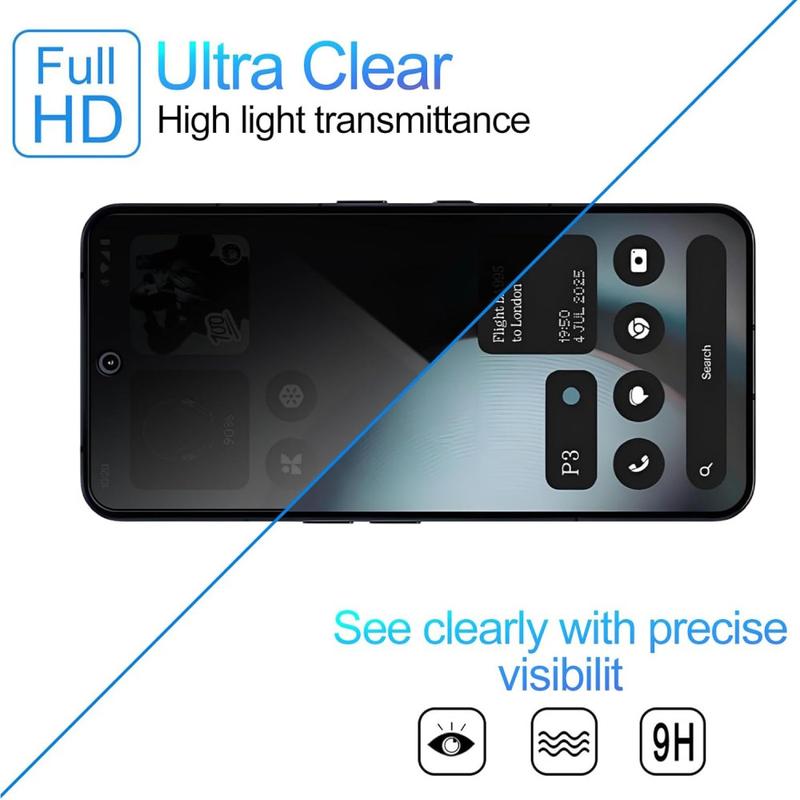 Ce verre trempé à couverture complète est la solution ultime pour protéger l'écran de votre Nothing Phone (4a) tout en préservant votre vie privée. Le filtre de confidentialité est la caractéristique principale de ce verre trempé, conçu pour protéger vos informations sensibles des regards indiscrets. La conception à couverture complète de ce verre trempé garantit que chaque coin de l'écran de votre Nothing Phone (4a) est protégé.