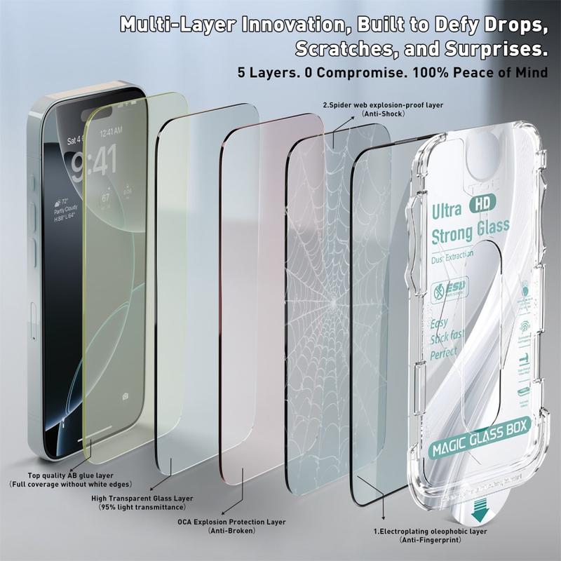 Que ce soit pour le travail, les jeux ou les voyages, cette protection garantit que votre iPhone 16 Pro reste à l'abri des rayures, des empreintes digitales et des chutes accidentelles, tandis que l'outil d'installation permet de l'appliquer à la maison de manière rapide et professionnelle.