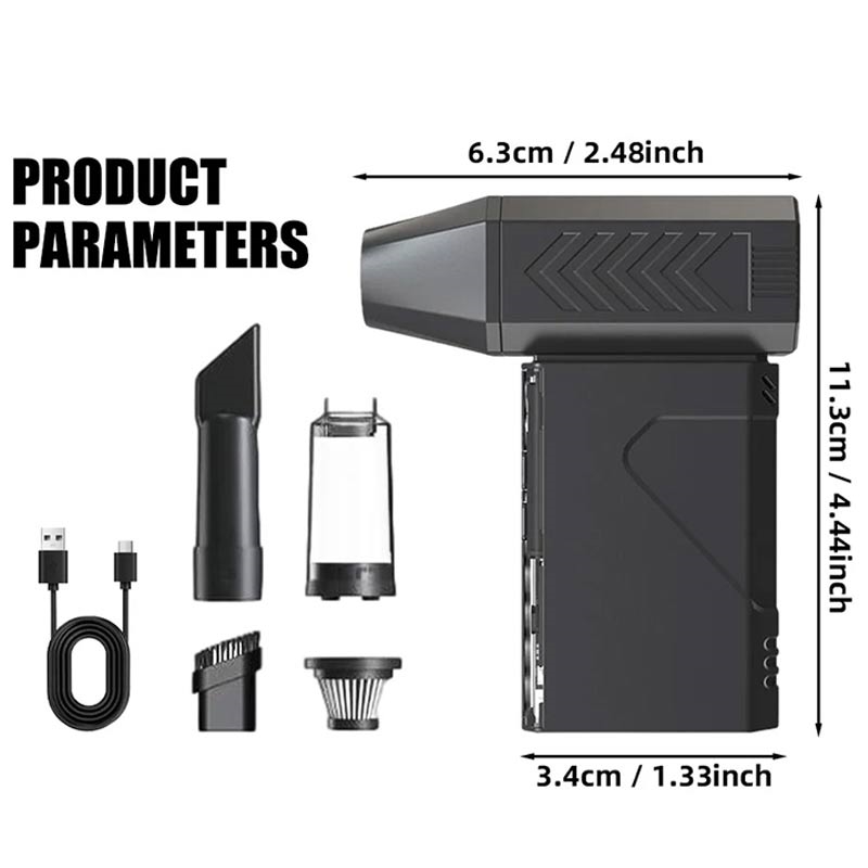Le souffleur et aspirateur 2 en 1 Jet Turbo est un outil de nettoyage compact et rapide, conçu pour éliminer rapidement la poussière et effectuer le ménage quotidien. Passez du soufflage puissant à l'aspiration pour effectuer différentes tâches dans votre maison, votre voiture ou votre espace de travail. Avec 100 niveaux de vitesse et une batterie de 8 000 mAh, vous pouvez régler avec précision le débit d'air ou l'aspiration et continuer à travailler pendant de longues sessions si nécessaire.