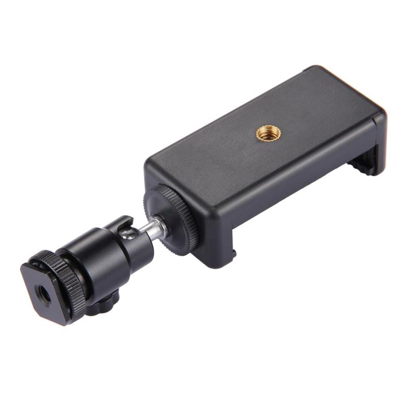 • Puluz PU214 Tête de trépied à griffe 1/4" + pince de fixation pour Smartphones (Largeur de la pince : 6-7.6 cm)