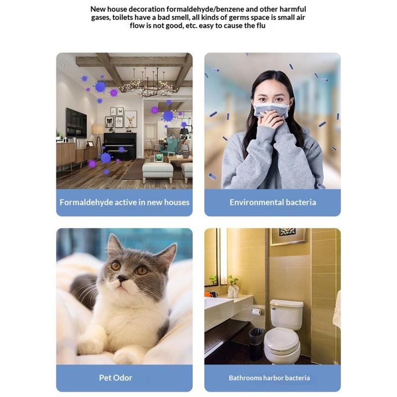 - Le débit d'air de 50 m³/h convient aux bureaux, chambres à coucher, voitures et autres petits espaces de la vie quotidienne.