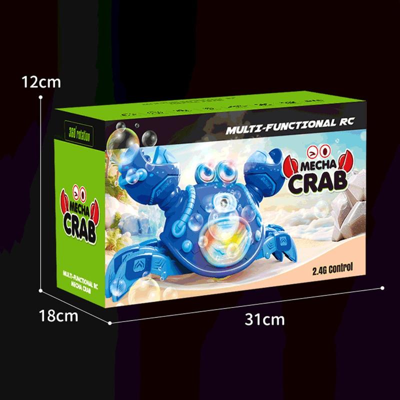 Grâce à la télécommande 2,4 GHz et à une portée allant jusqu'à 40 m, le crabe peut se déplacer, tourner, pulvériser de la brume et créer des bulles pour une expérience de jeu encore plus divertissante. Son corps en ABS résistant et ses bords arrondis le rendent pratique pour un usage quotidien, tandis que le mode démo automatique ajoute encore plus de plaisir.