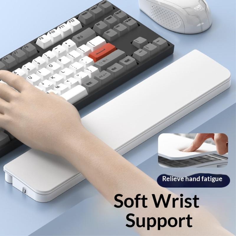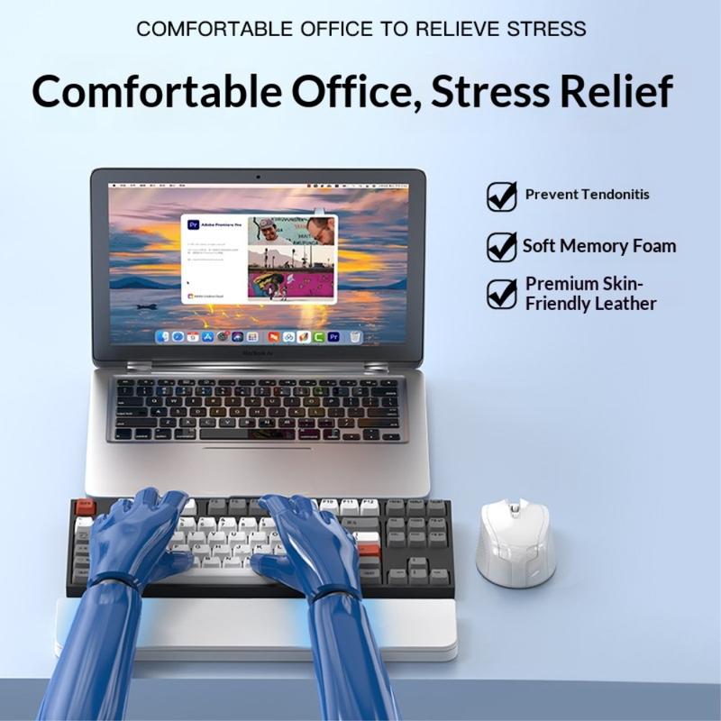 Le repose-poignet est fabriqué en polyuréthane souple et en mousse de haute qualité pour offrir un soutien doux et stable au poignet. Sa conception ergonomique permet de réduire la pression et la fatigue pendant les séances prolongées de dactylographie, de travail de bureau ou d'étude.