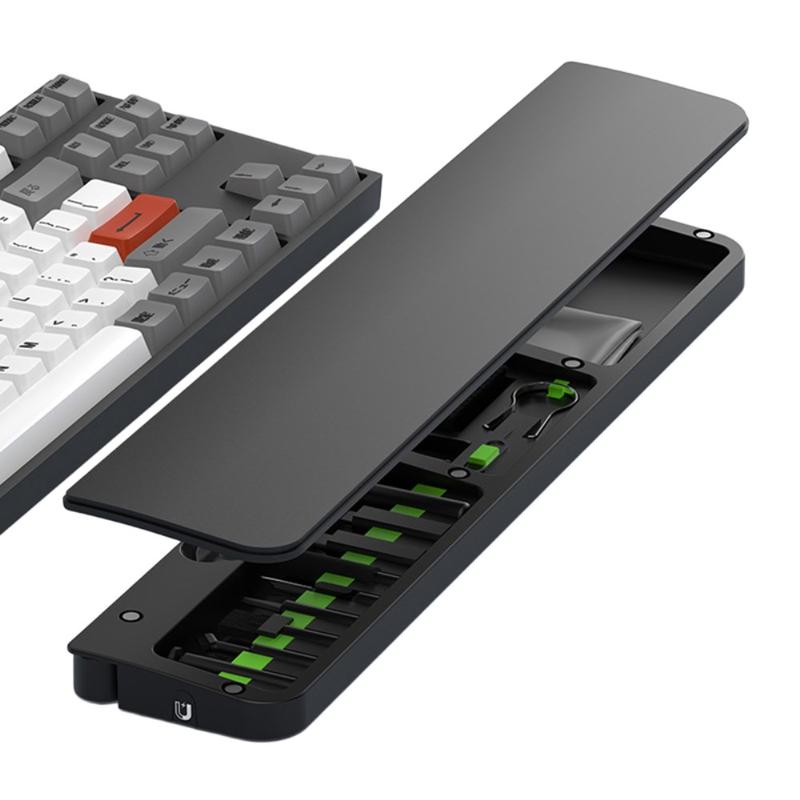 À l'intérieur du repose-poignet se trouve un kit de nettoyage complet de 22 outils conçu pour nettoyer en profondeur les claviers, les écouteurs, les ports de chargement de téléphone, les objectifs d'appareil photo, les interrupteurs et autres appareils électroniques. Chaque outil a sa propre place, ce qui garantit une organisation facile et un accès rapide.