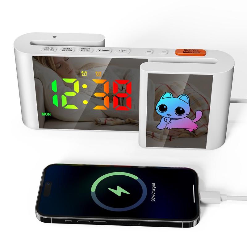 - Fonctions : Heure, alarme, répétition, date, veilleuse RVB, port de charge USB