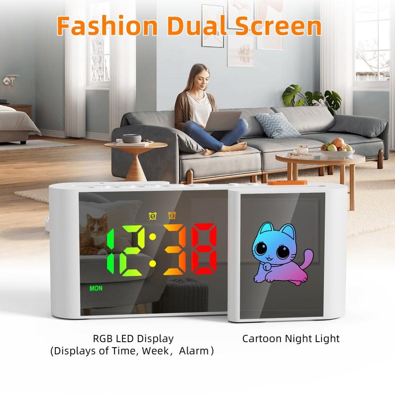 - Conception unique du double écran en forme de S - La disposition créative en forme de S sépare l'affichage de l'horloge et la veilleuse pour un look élégant et moderne qui rehausse n'importe quel décor.
