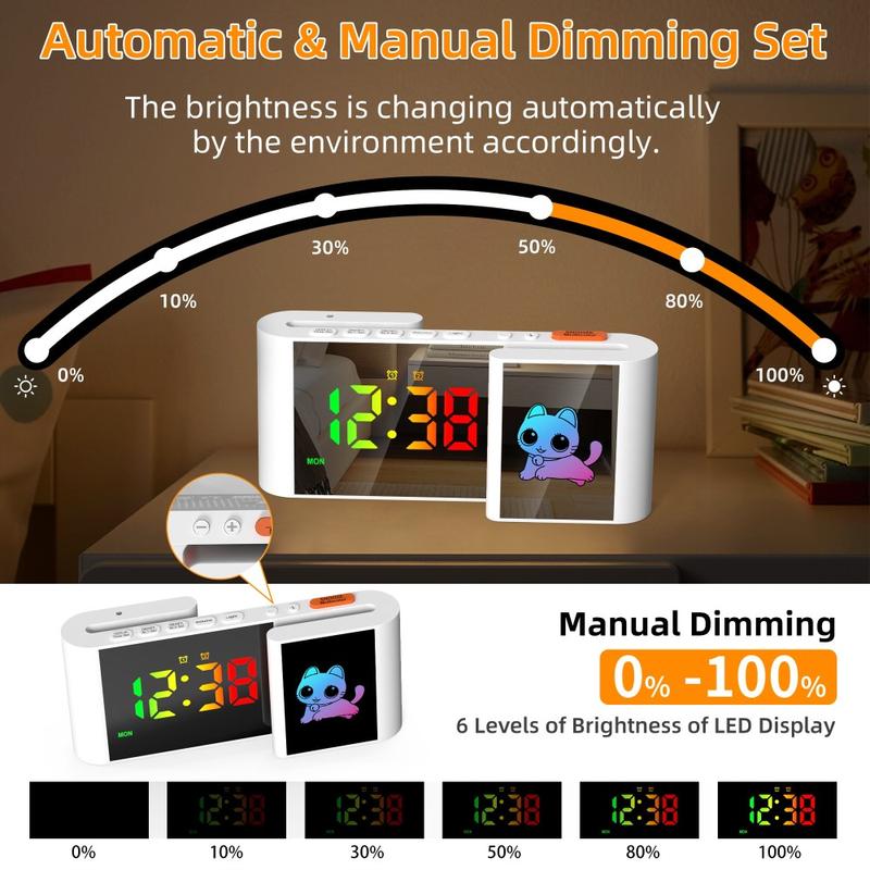 - Volume et luminosité réglables - Réglez vos paramètres avec un volume d'alarme à 5 niveaux et un réglage progressif de la luminosité de la veilleuse, parfaits pour un confort personnalisé.