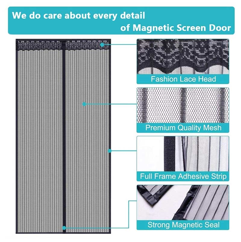 Parfait pour les maisons avec des enfants ou des animaux domestiques, offrant une commodité mains libres tout en empêchant les moustiques et les mouches d'entrer. Idéal pour les portes de balcon, les entrées de patio ou les passages de cuisine.