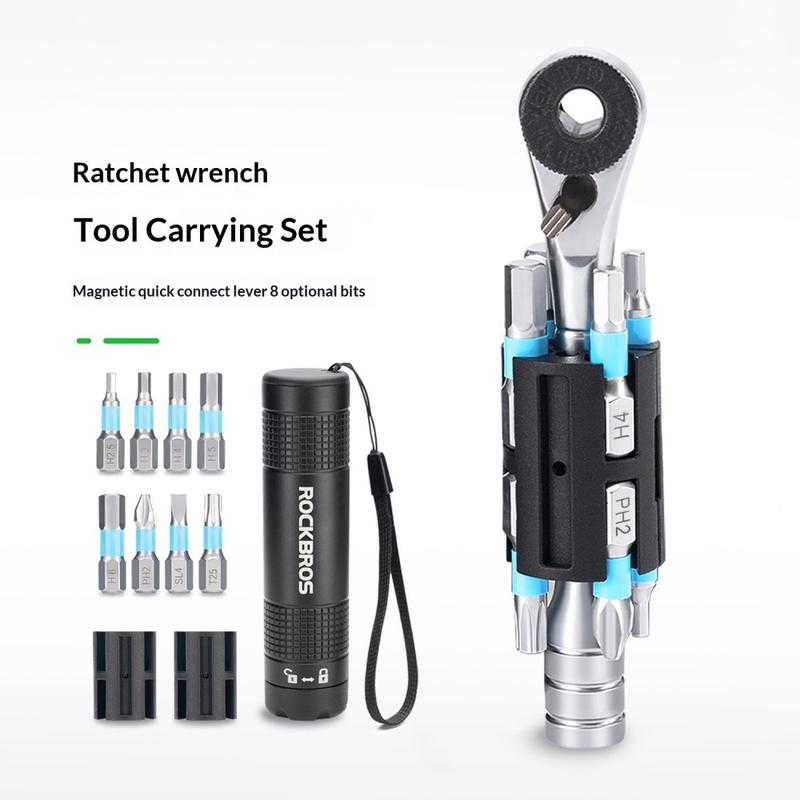 Rockbros TG-8601 Jeu de clés à cliquet portables / Trousse d'outils magnétiques pour réparation de vélos avec 8 embouts