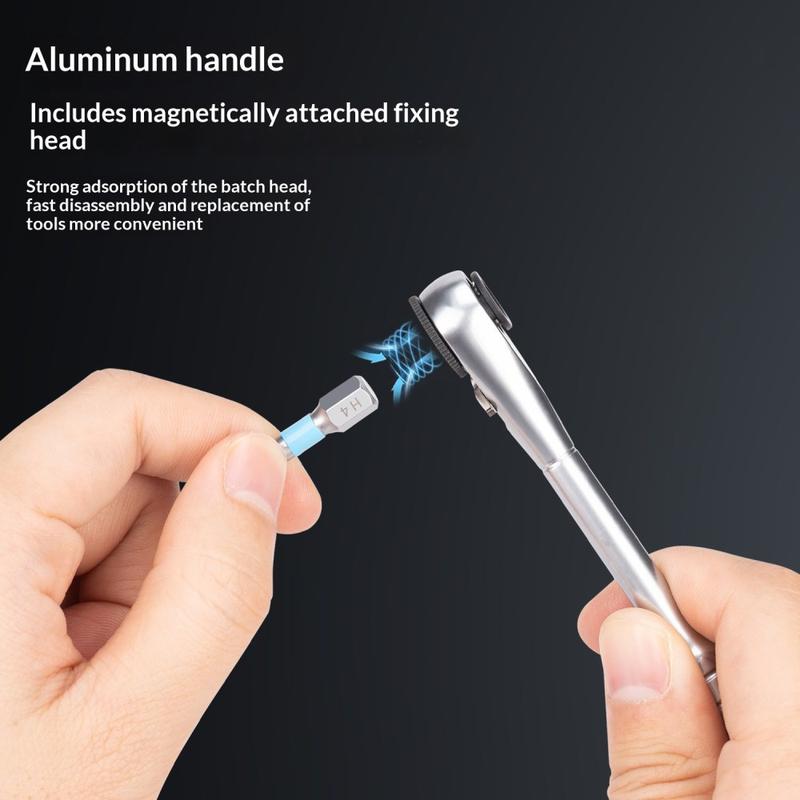 Une tige à connexion rapide magnétique permet de changer rapidement et en toute sécurité les embouts, ce qui améliore l'efficacité du travail et réduit le risque de faire tomber de petites pièces pendant les réparations.