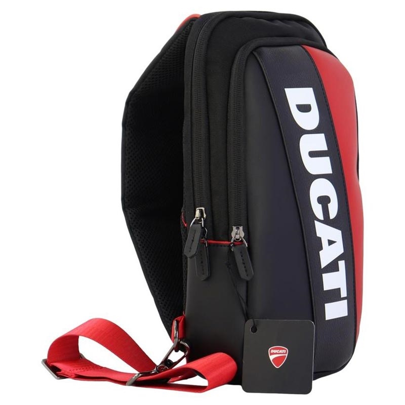 Sac à bandoulière Ducati - Bandoulière réglable, dos en maille respirante, multiples poches