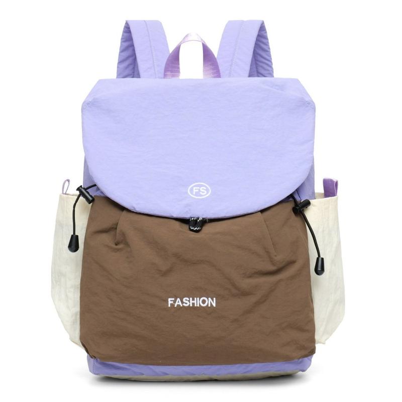 Sac à dos en toile Vintage Color Block de grande capacité - violet / kaki