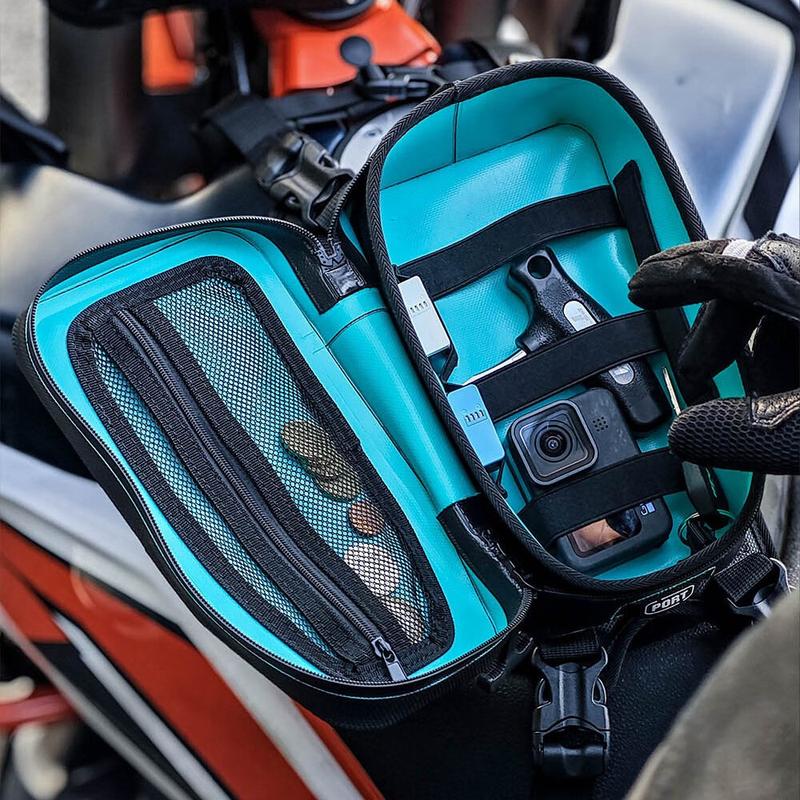 - Les sacoches de réservoir permettent aux motards d'accéder rapidement à de petits objets sans s'arrêter pour ouvrir des compartiments de rangement plus volumineux.