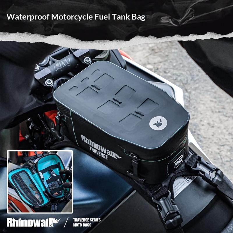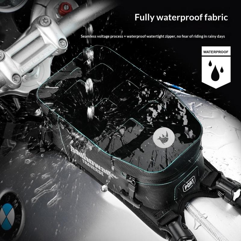 • Sacoche de réservoir pour moto Rhinowalk MCY2601 2l - Sacoche de rangement avant imperméable et réfléchissante avec système MOLLE pour la série TRaverse