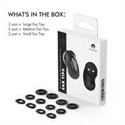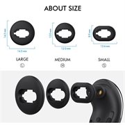 - Trois tailles (S / M / L) s'adaptent aux conduits auditifs de 10 mm à 14 mm, garantissant des sessions d'écoute plus longues sans points de pression.