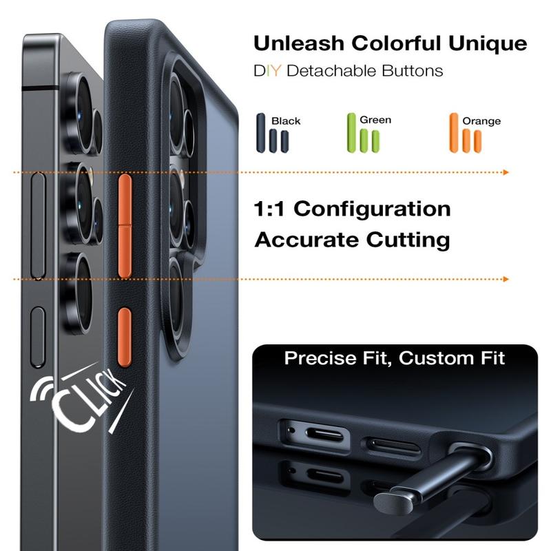 L'étui comprend trois jeux de boutons interchangeables, ce qui vous permet de personnaliser le look de votre Samsung Galaxy S26 Ultra. Changez facilement les boutons pour les assortir à votre style, votre tenue ou votre humeur et créez une apparence unique et personnalisée.