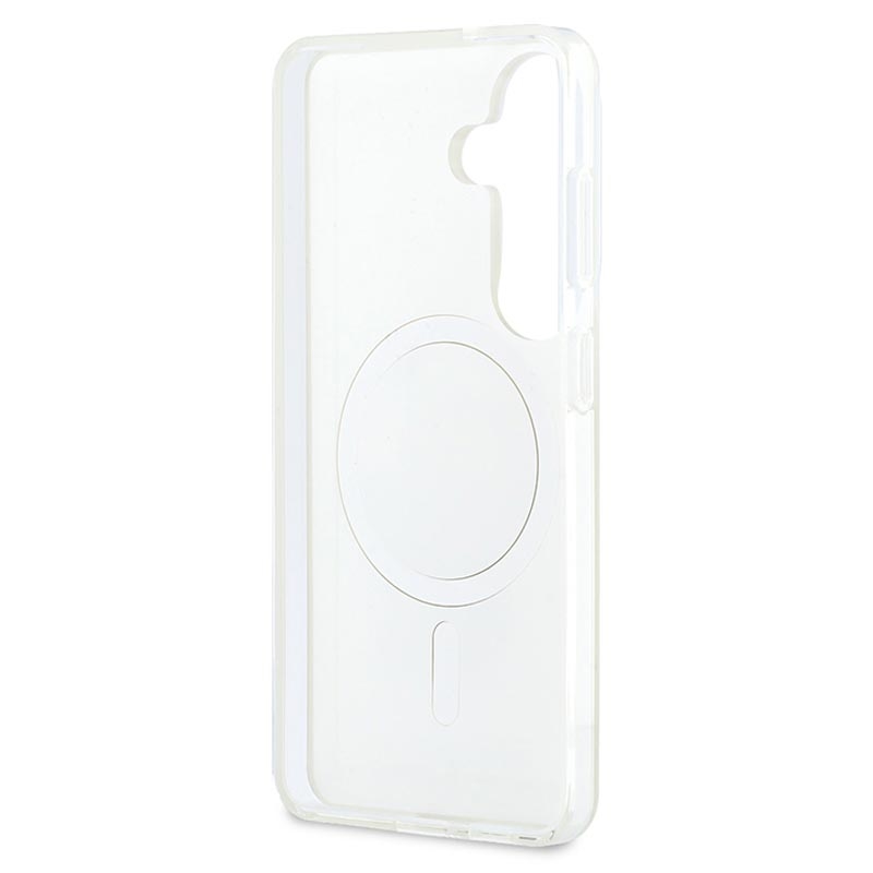 Rehaussez votre look quotidien avec la coque magnétique Karl Lagerfeld IML Karl et Choupette Back Logo pour Samsung Galaxy S26. Conçue pour allier style haut de gamme et protection pratique, cette coque hybride arbore le logo emblématique représentant les silhouettes de Karl et Choupette au dos, pour une finition moderne et tendance. Avec son dos rigide en PC et ses côtés souples en TPU, elle protège votre téléphone de l'usure quotidienne tout en restant fine, confortable et facile à tenir.