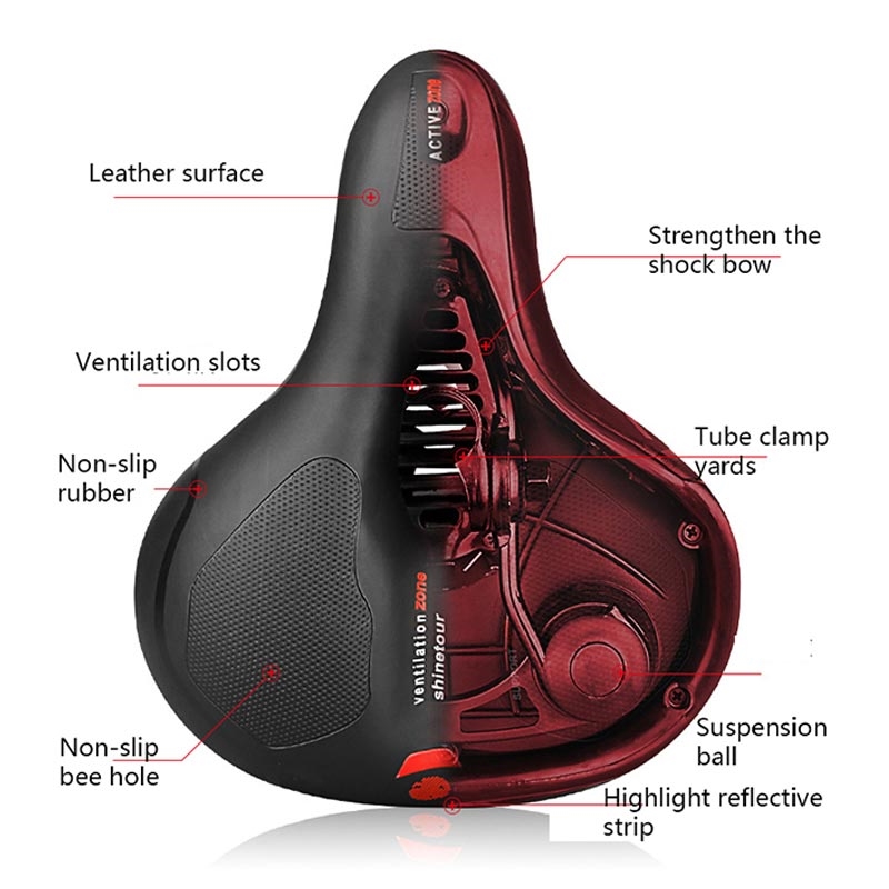 Siège de vélo large et rembourré - Selle de vélo antichoc et réfléchissante avec boule de suspension
