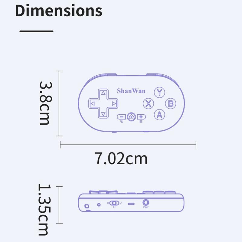 Transformez n'importe quelle pause en moment de jeu avec la mini manette de jeu Bluetooth de SHANWAN. Conçue pour le jeu portable, elle est ultra-légère avec seulement 0,024 kg et suffisamment compacte pour se glisser dans une poche, tout en offrant des commandes réactives et un retour de vibration pour une sensation plus immersive. Avec une connexion Bluetooth stable et un chargement USB-C pratique, c'est un choix intelligent pour les joueurs mobiles et tous ceux qui veulent une manette pratique pour des sessions occasionnelles sur des appareils compatibles.
