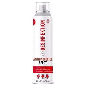 Take this disinfection and antibacterial spray and get rid of bacteria and germs. It is an efficient and universal hygienic spray and can be used to disinfect hands and most of the surfaces. The antibacterial spray is based on 70% ethanol and contains glycerin. Always make sure that the surface you want to clean is resistant to alcohol before you applicate it.