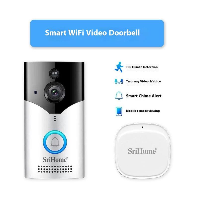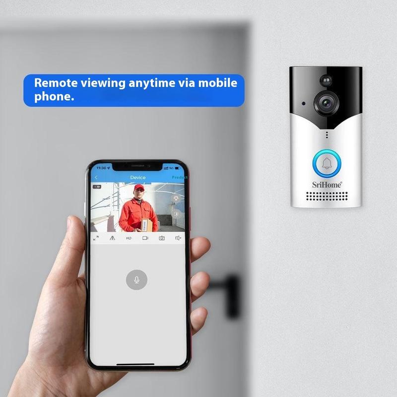• SRIHOME DH002 Sonnette vidéo intelligente - Caméra HD WiFi 4MP avec vision nocturne, détection de mouvement PIR et audio bidirectionnel