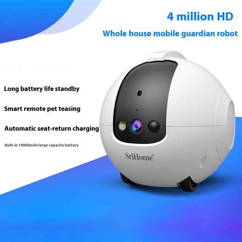 • SRIHOME DH013 Robot caméra intelligent AI pour moniteur d'animaux avec station de charge - Interaction IA intelligente, vue à 360°, vision nocturne couleur, audio bidirectionnel et batterie 10 000 mAh