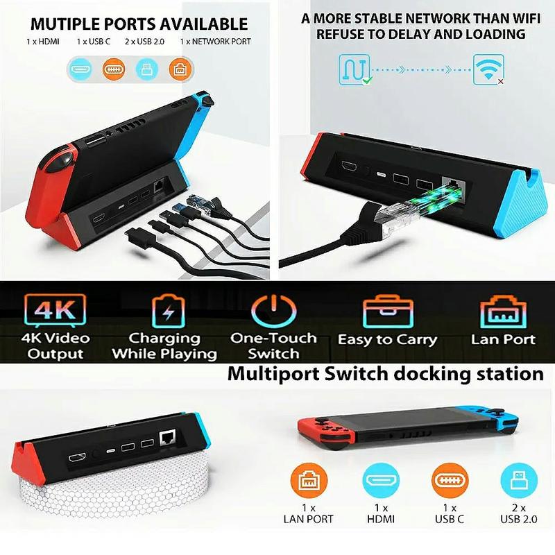 La technologie HDMI 2.1 prend en charge des taux de rafraîchissement et des résolutions élevés, permettant une sortie 4K à 120Hz pour un gameplay plus fluide et plus réactif. Associée à Gigabit Ethernet, cette station d'accueil garantit à la fois les performances visuelles et la stabilité en ligne, ce qui donne un avantage aux joueurs compétitifs.