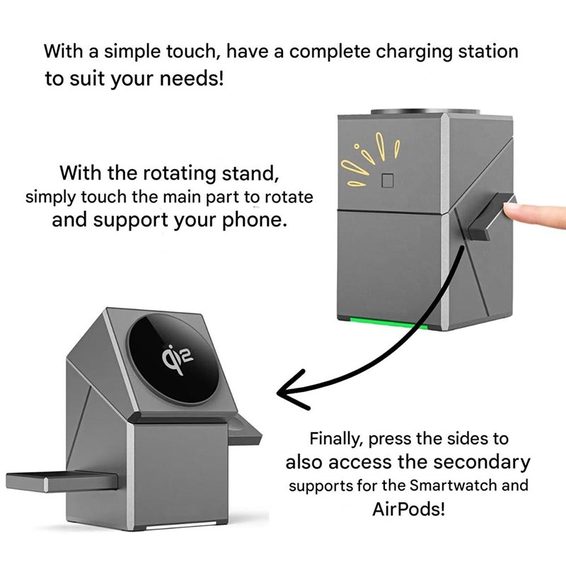 Pourquoi ce produit est idéal Il combine la charge rapide Qi2 avec une structure rotative ingénieusement conçue qui s'adapte à votre espace et à votre utilisation. Un seul chargeur remplace plusieurs câbles tout en conservant une allure élégante et haut de gamme.