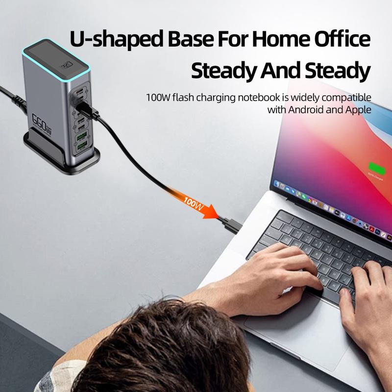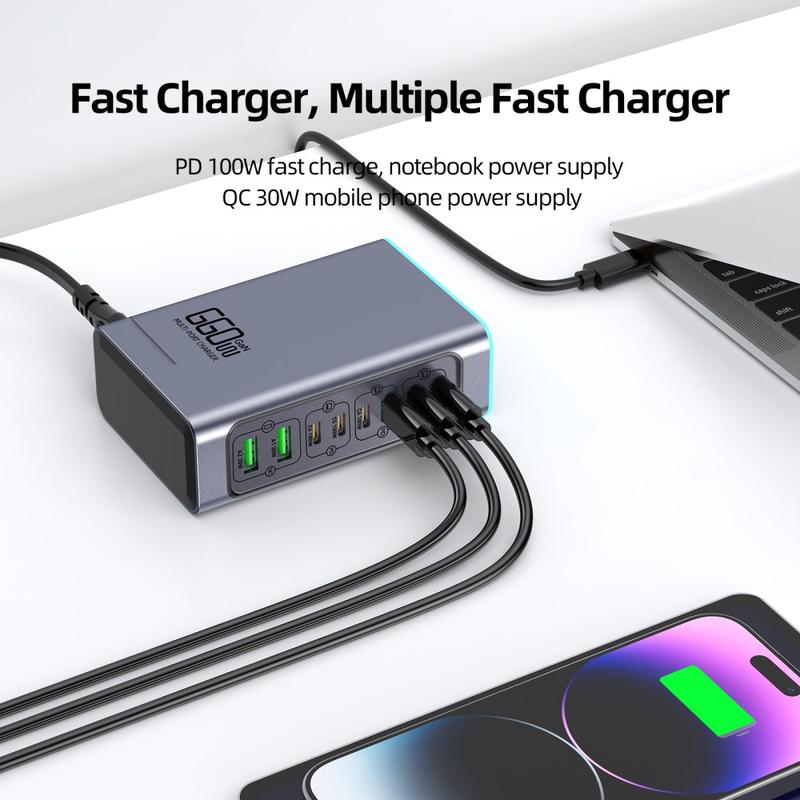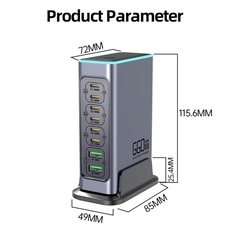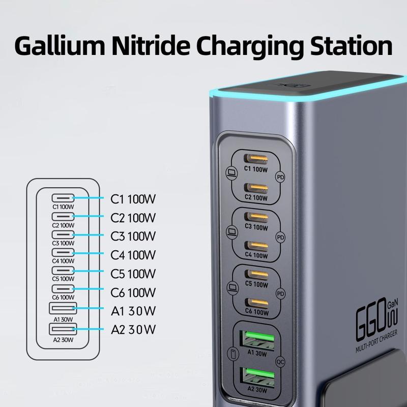 Remplacez un bureau encombré de chargeurs par un seul hub haute puissance. La station de recharge de bureau WLX-F8L GaN est conçue pour les configurations multi-appareils intensives : elle permet de recharger simultanément des ordinateurs portables, des tablettes, des téléphones, des batteries externes, des écouteurs et bien plus encore. Avec six ports USB-C prenant en charge des profils Power Delivery jusqu'à 20 V/5 A et deux ports USB-A avec QC3.0, elle est conçue pour offrir une recharge rapide et efficace à une large gamme d'appareils tout en gardant votre espace de travail plus propre et mieux organisé.