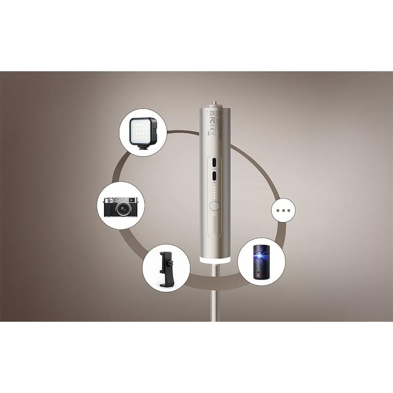 PowerPlay combine deux éléments essentiels en un seul : un support stable et réglable et une source d'alimentation supplémentaire. Au lieu de transporter un trépied et une batterie externe séparée, vous bénéficiez d'une installation plus propre, plus facile à ranger et plus rapide à utiliser. La fixation magnétique accélère le montage, la base antidérapante améliore la stabilité et la prise en charge de la charge rapide PD vous permet de recharger rapidement votre appareil lorsque vous en avez besoin. Il s'agit d'une mise à niveau pratique pour toute personne utilisant régulièrement un projecteur portable, en particulier à l'extérieur ou en voyage.