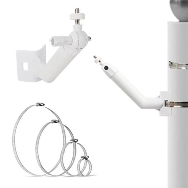 Support de caméra de surveillance sur poteau avec 4 pinces en métal - Blanc
