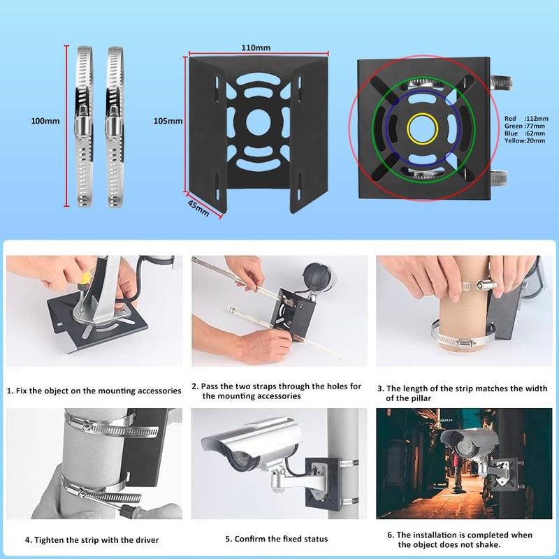 Conçu pour une utilisation polyvalente, le support peut être installé sur des poteaux verticaux, des barres horizontales, des poteaux électriques et des murs, ce qui le rend adaptable à une grande variété d'applications de surveillance.