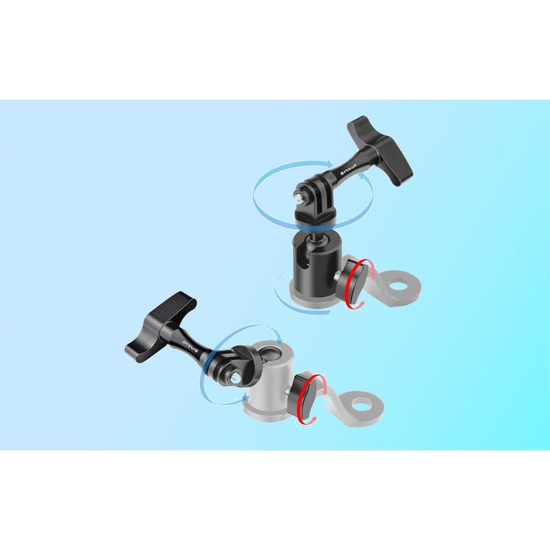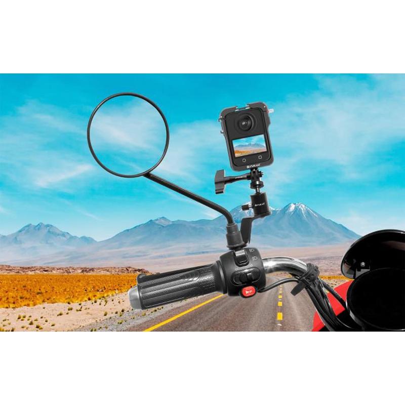 • Support de caméra pour rétroviseur de moto en aluminium Puluz PU1056B - Rotation à 360 degrés, filetage 1/4" + support GoPro, charge maximale de 2 kg, compatible avec les boulons de rétroviseur de 10 mm
