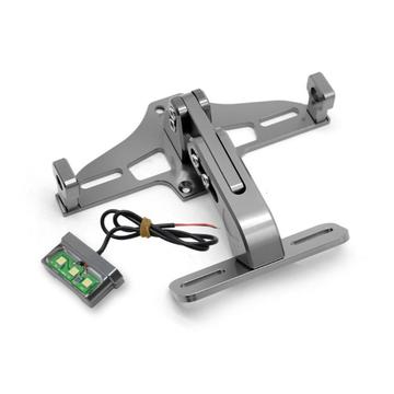 Support de plaque d'immatriculation moto réglable en alliage d'aluminium CNC avec éclairage LED - Gris titane