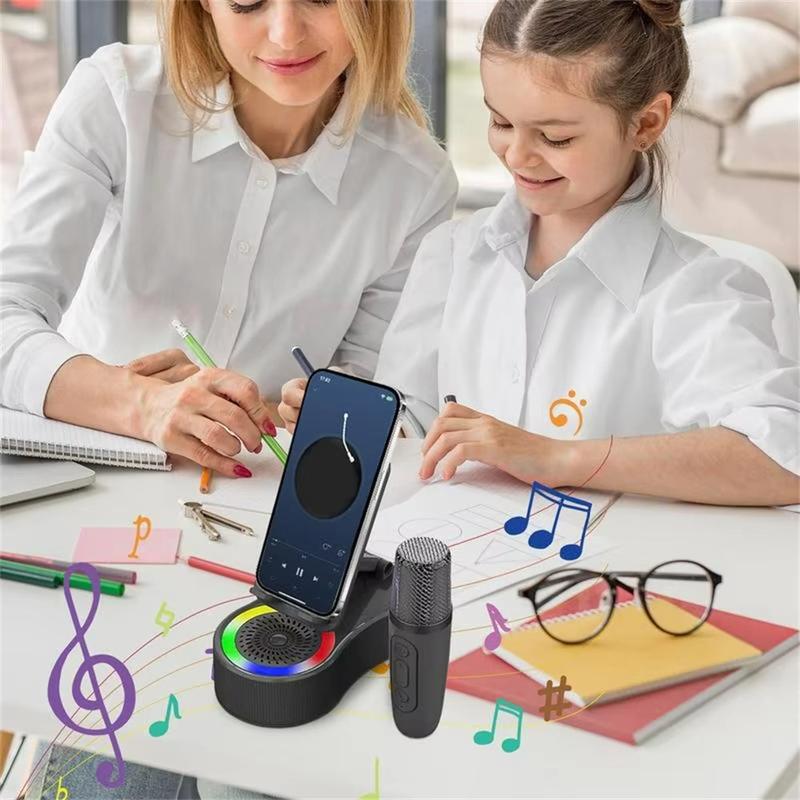 • Support de téléphone rotatif K500 avec haut-parleur Bluetooth 5.3 et 2 microphones de karaoké sans fil
