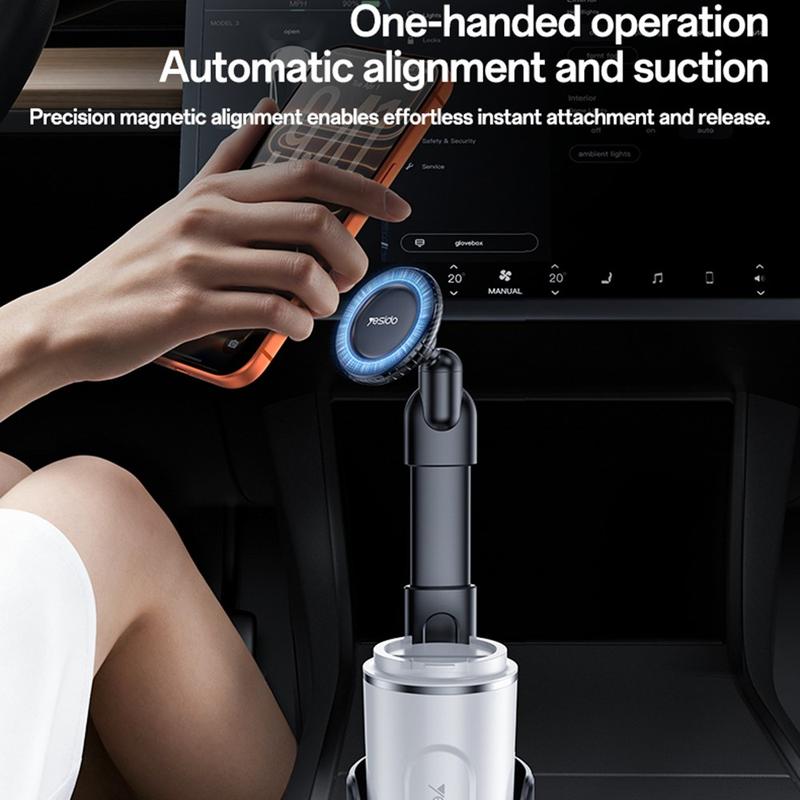 • Porte-gobelet magnétique Yesido C230 pour voiture - Support pivotant à 360° avec 16 aimants N52, utilisation d'une seule main
