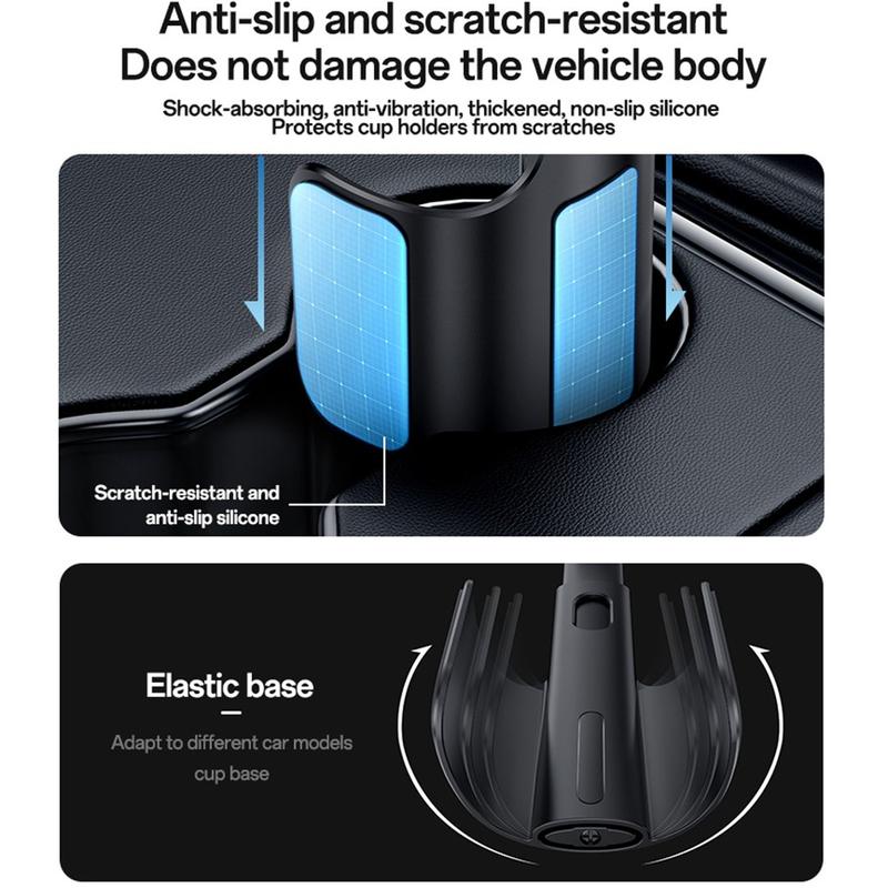 - La base élastique pour porte-gobelet s'adapte à différents types de véhicules, notamment les berlines, les SUV, les camions et les monospaces