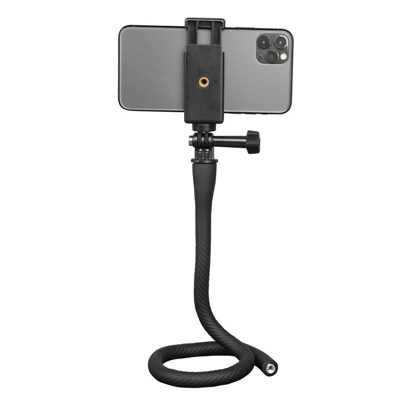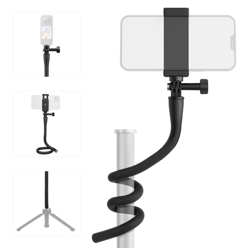 Comprend un adaptateur 1/4" et un clip pour téléphone, compatible avec les smartphones de toutes marques et les caméras d'action (série GoPro Hero, série DJI Action, etc.). Le trou fileté 1/4" vous permet également de le fixer à un trépied.