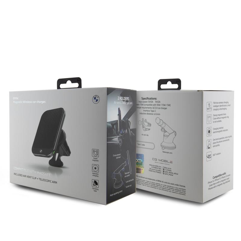 • Support magnétique pour voiture BMW Signature Edition avec recharge sans fil 15 W - Compatible MagSafe, fixation sur grille d'aération et ventouse