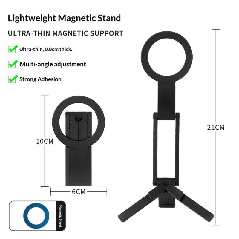 Support magnétique ultrafin pour téléphone de 8 mm - Support de bureau pliable à trépied avec angle réglable à 360