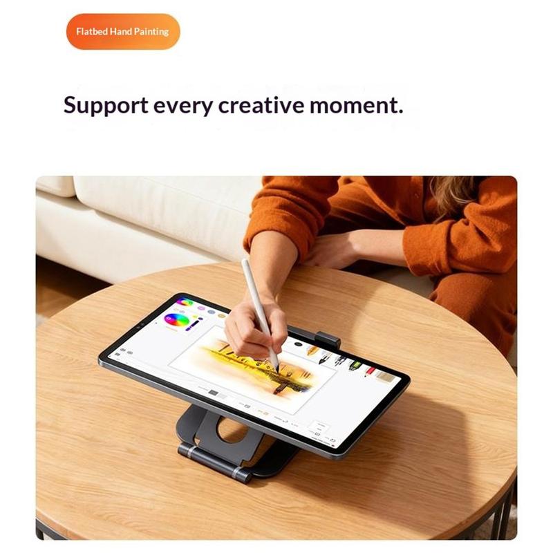 Le support pliable pour téléphone et tablette T2 MAX est un support de bureau pratique conçu pour rendre le travail, les études, le streaming et la navigation sur Internet plus confortables. Adapté aussi bien aux téléphones qu'aux tablettes, il offre une surface stable et réglable pour un usage quotidien à la maison, au bureau ou en déplacement. Son design pliable et sa structure en alliage d'aluminium en font un choix judicieux pour les utilisateurs à la recherche d'un support fiable, facile à transporter et à ranger.