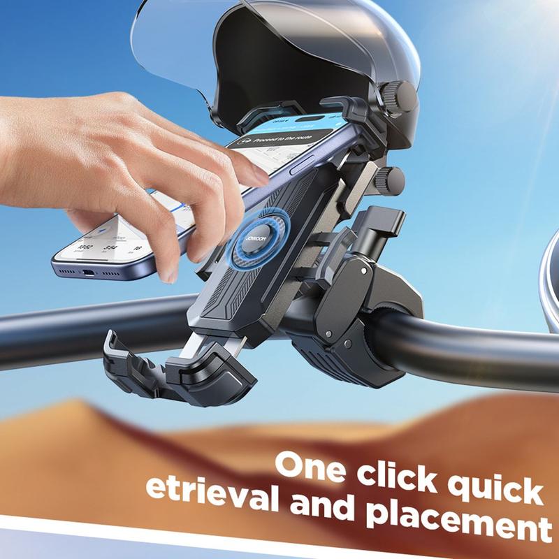 Roulez avec une meilleure visibilité et un accès plus sûr à la navigation grâce au support pour téléphone JOYROOM JR-ZS526. Conçu pour les vélos électriques, les vélos et les motos, il est équipé d'un pare-soleil réglable à 270 degrés qui aide à bloquer les reflets et les éblouissements afin que votre écran reste lisible en plein soleil. Un mécanisme de verrouillage robuste et des bras de fixation métalliques maintiennent votre téléphone stable sur les routes accidentées, tandis que le bouton de déverrouillage rapide vous permet de fixer ou de retirer votre appareil d'une seule main en quelques secondes.