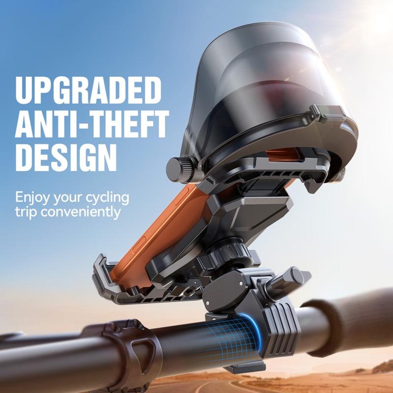 La conception à dégagement rapide d'une seule main vous permet de monter ou de retirer facilement votre téléphone pendant que vous vous préparez à rouler. Un mécanisme de verrouillage antidérapant renforcé maintient l'appareil fermement en place, même sur les terrains accidentés, tandis que la structure amortissante aide à réduire les vibrations de la route. Grâce à une rotation complète à 360°, vous pouvez régler l'angle de vue en fonction des différentes positions de conduite.