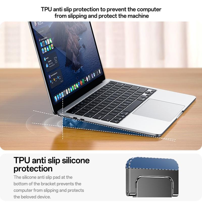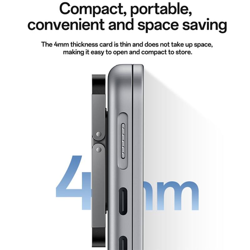 Leur conception légère, d'une épaisseur de seulement 4 mm, en fait un accessoire idéal pour les professionnels, les étudiants et les voyageurs qui ont besoin d'un support d'ordinateur portable portable qui reste fixé sans ajouter de volume. Deux positions de hauteur réglables vous permettent de choisir l'angle de travail le plus confortable, que vous tapiez, regardiez du contenu ou travailliez pendant de longues périodes.