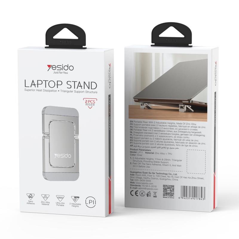 Support surélevé pour ordinateur portable Yesido LP11 en alliage de zinc - 2 pièces - Argent