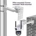 Ce support prend en charge le montage mural, le montage en angle et le montage sur poteau, ce qui le rend adapté à divers scénarios d'installation. Il s'adapte facilement aux besoins de surveillance résidentiels, commerciaux et industriels sans nécessiter de multiples accessoires de montage.